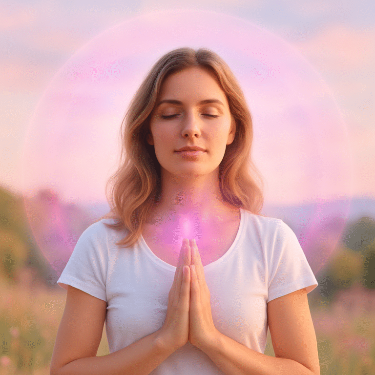 Sense a delicate radiance forming around you in the shape of an egg. It hovers at a safe distance, about three feet from your heart. It glows with rose light, shimmering with tenderness. Allow yourself to simply notice its presence, like the faint touch of a harp string resonating in the air.